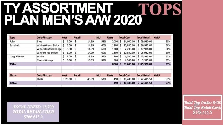6 month buying and assortment plan for Autumn/Winter 2020 Menswear.